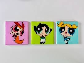 Teacher and artisan Margot Lopes has handcrafted these charming ceramic coasters, each featuring acrylic artwork of the iconic Powerpuff Girls. This set of three combines playful nostalgia with functional design, making it a fun addition to any table or a great collectible for fans of the classic cartoon.