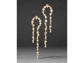 Glistening from every angle, these extravagant 14k gold plated earrings have an arching silhouette of molten bezel set crystals. Staggered & hinged to dazzle with movement, while maintaining a dramatic opulent structure.