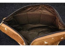 This gorgeous Leather Cowhide-Covered Tote from Untundra is large enough to pack for a long weekend, but will get you on the plane as a carry-on. Contains a leather strap on the back to slide over your suitcase, brown leather pouch on the front, lots of zipper storage and room inside and is ready to hit the road whenever you are ready to go!