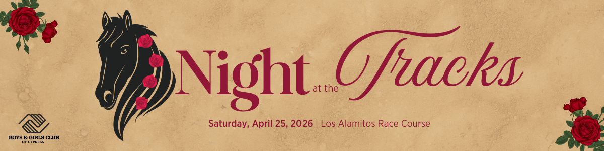 You can still participate in the auction!Join the Boys & Girls Club of Cypress for A Night at the Tracks, a memorable evening of excitement and giving at the iconic Los Alamitos Race Course, beginning at 5:00 PM. This special event brings our community together in support of local youth and families in Cypress, while enjoying the thrill and tradition of the races.