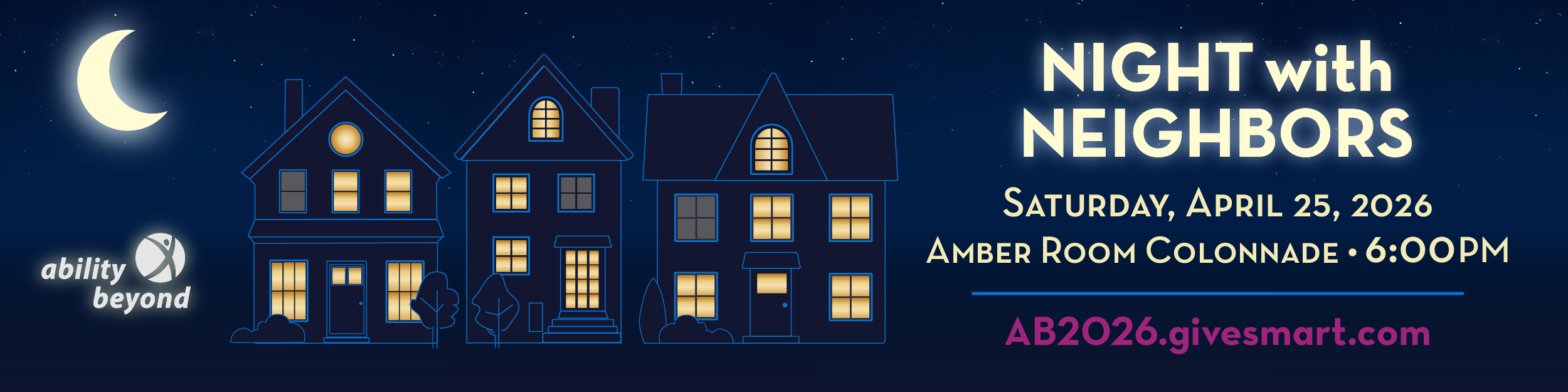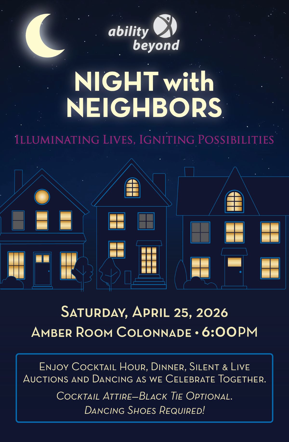 We invite you to join us for Ability Beyond's annual spring fundraiser, Night with Neighbors: Illuminating Lives, Igniting Possibilities, on Saturday, April 25, 2026, at the Amber Room Colonnade in Danbury. This year we joyfully celebrate and honor the Danbury Community with the Robert S. Young Humanitarian Award. We'll recognize not a single honoree, but an entire community of residents, businesses, organizations, and civic leaders, whose unwavering support continues to ignite possibilities for all!