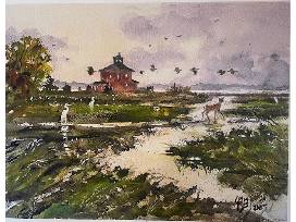 Richard has painted a number of high profile portraits as well as historical paintings - most often a crow's nest view of 18th and 19th C towns. He has also painted pleinaire for many years in and about his hometown of Newburyport MA where he has lived since 1950. He is married with three daughters and has a studio in the back of his home.