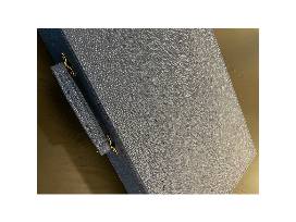 - Blue leather briefcase style storage case