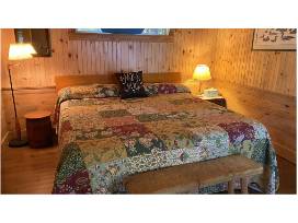 The fully maintained and renovated Cottage is perched just above the shore line and has extensive beach, water and mountain views from many large windows. The cottage is just a few steps from a 250 yard long private property beach with fresh clear spring fed water lake and gradual sandy bottom swimming.