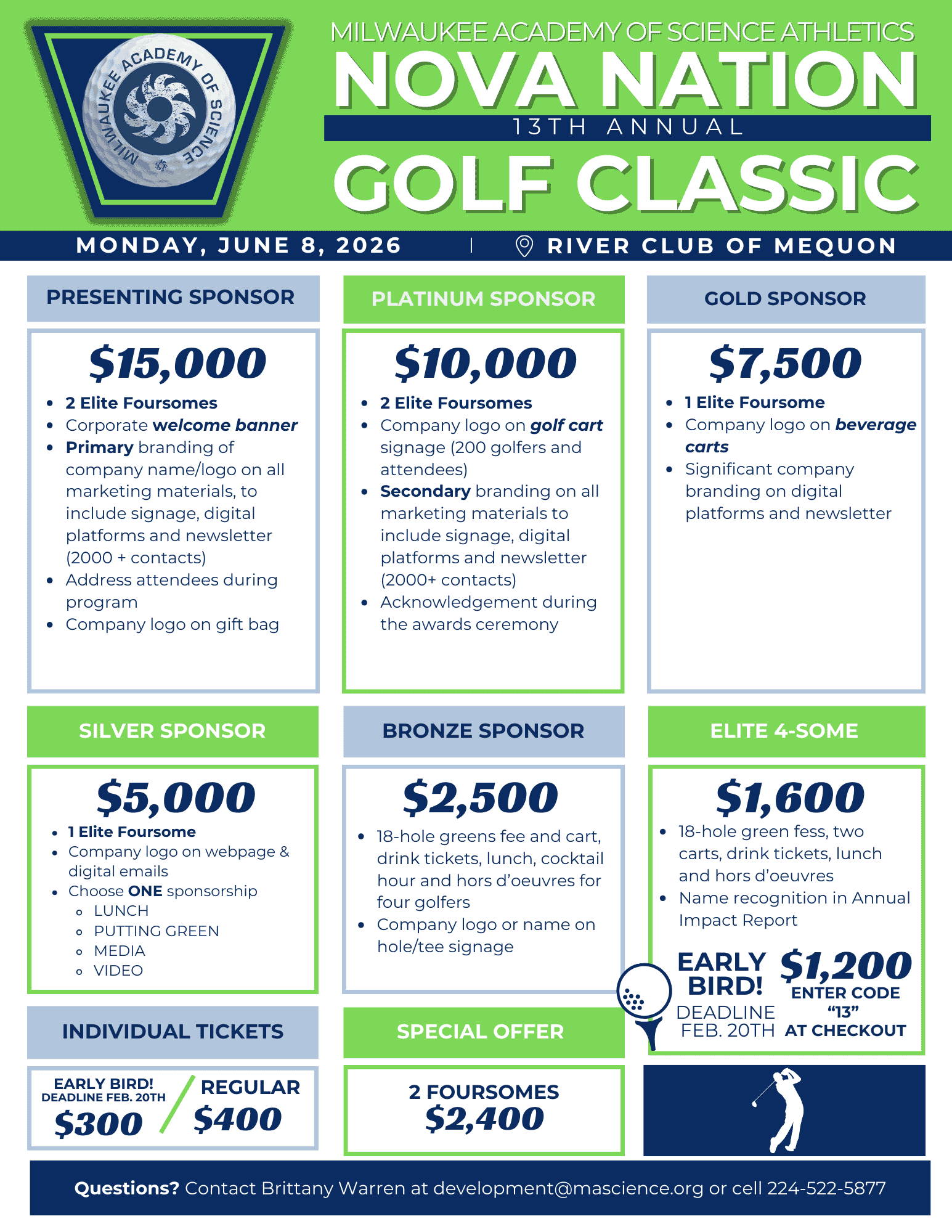 Join us for the 13th Annual Nova Nation Golf Classic, the premier fundraising event supporting Milwaukee Academy of Science (MAS) Athletics. This signature outing brings together community leaders, supporters, and Nova Nation fans for a day of golf, connection, and impact, all in support of our scholar-athletes.