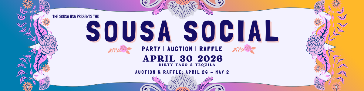 Sponsor the Sousa Social! Proceeds from the Sousa Social help underwrite the cost of educational materials, building facilities, and enrichment programs for the students of Sousa Elementary School that are not otherwise provided for in the school budget. Gain positive community visibility, demonstrate commitment to local education, and build goodwill with Sousa families who value and support businesses that invest in their children.
