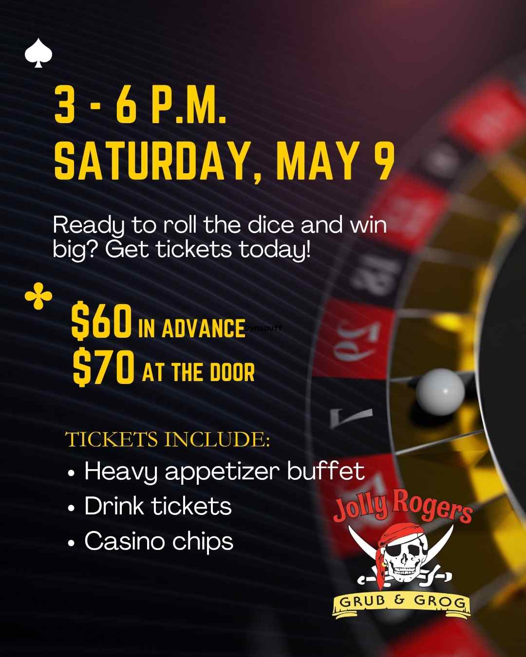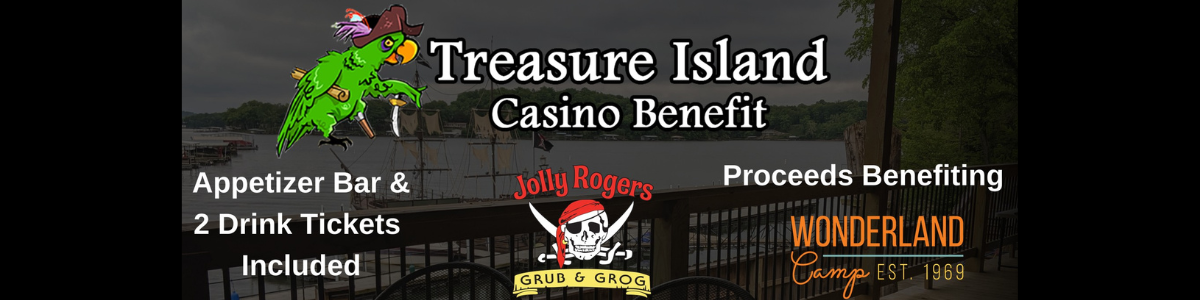 Join the fun! Casino games, raffles, prizes, auction, great food and drink! Join us from 3pm-6pm at Jolly Rogers Grub & Grog. Your ticket buys you all of the excitement and supports individuals with disabilities at Wonderland Camp.