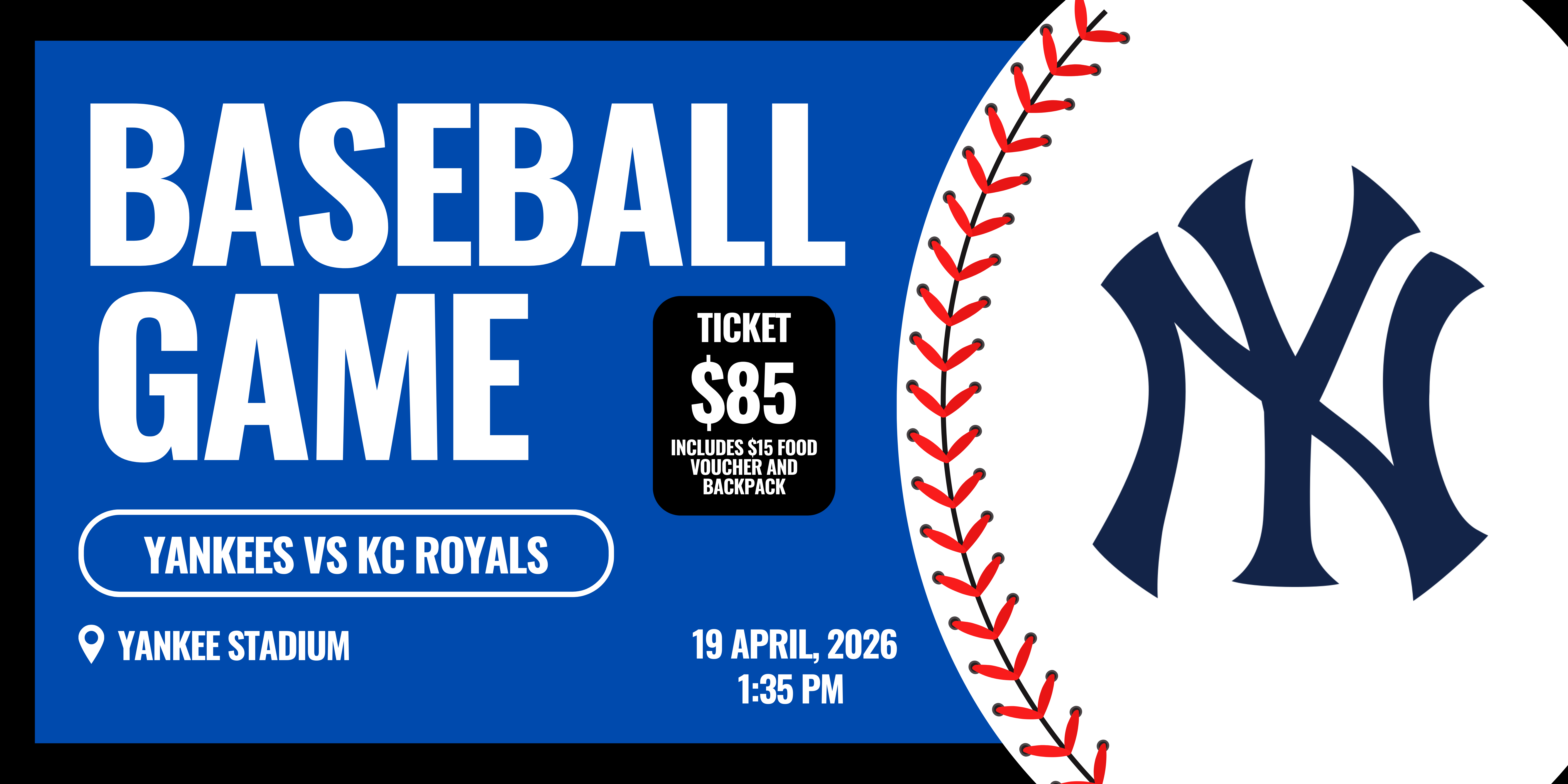 Tickets are on sale for $85/pp. Each ticket includes a $15 food/drink voucher and a NYY Backpack!