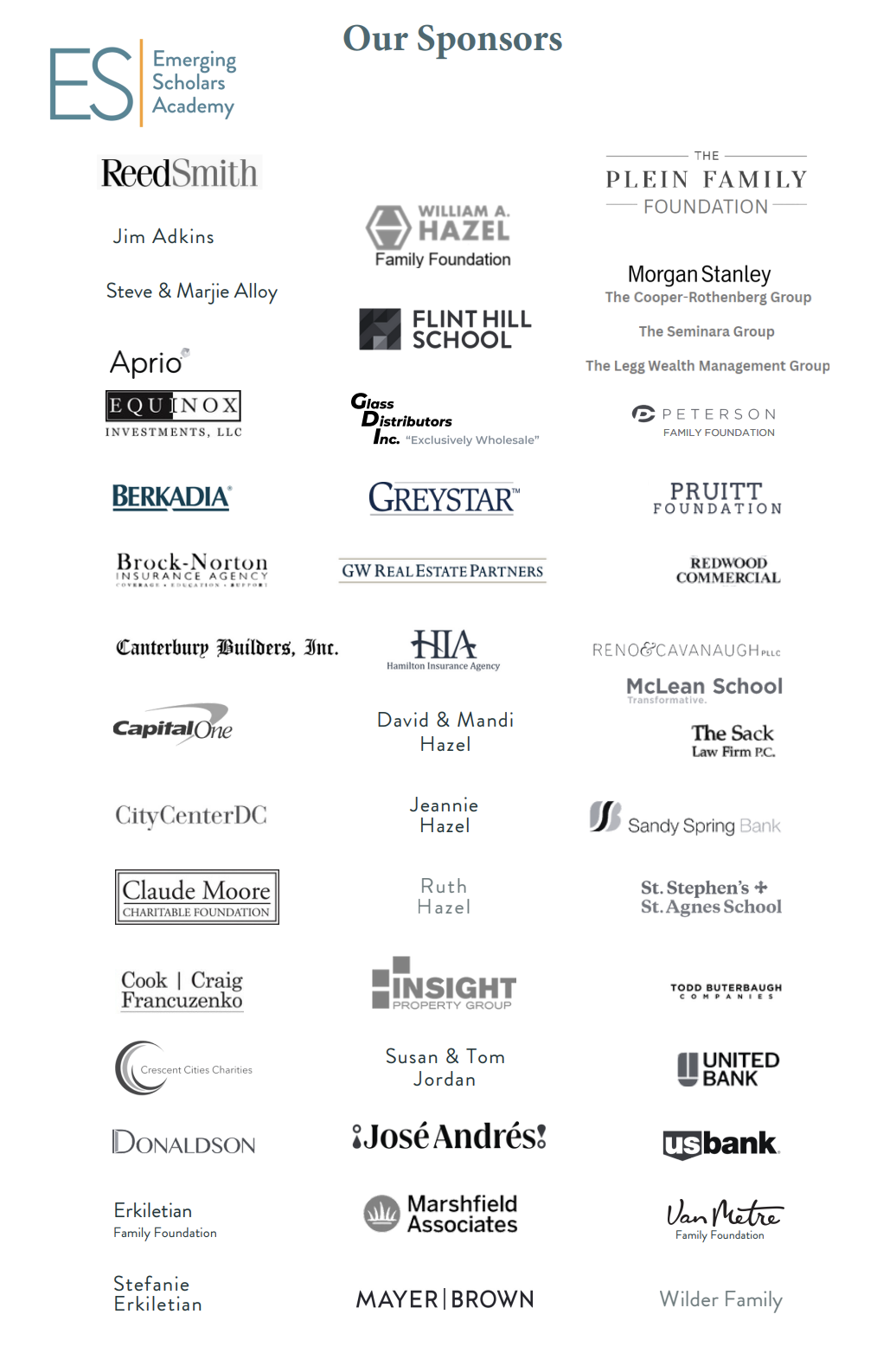 - Logo recognition on Annual ES Fundraiser cocktail napkins