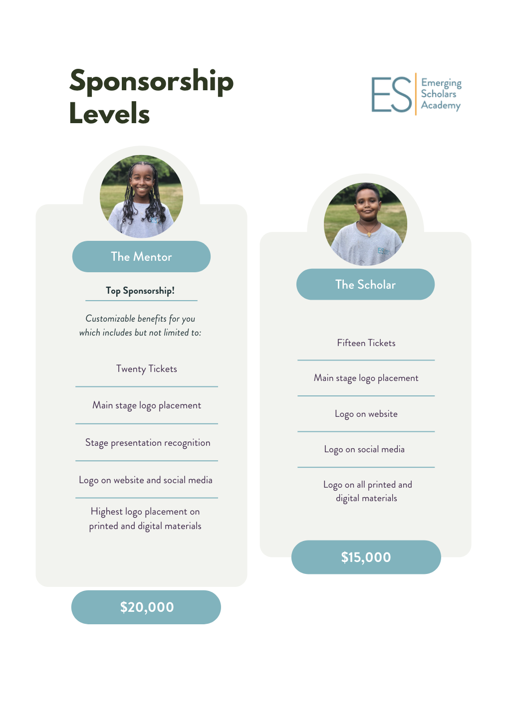 - Logo recognition on the ES website with a live link to your organization;