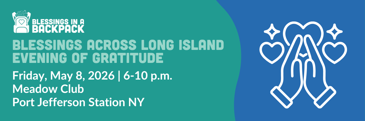 Coming Soon!Blessings Across Long Island is a local initiative under the national Blessings in a Backpack umbrella, which provides weekend food for students in the Longwood School District, Sachem School District, Long Island Head Start, Tri-CYA, and David Patterson at Hempstead School District. In 2024, the volunteers at Longwood saw a greater need and decided to expand their fundraising efforts to feed students in other school districts, thus was born Blessings Across Long Island. Now serving 1200 children each school weekend. Join us on May 8, 2026 at The Meadow Club for our annual Dinner Dance event - your support will help fight food insecurity right here in our community.