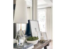 CRYSTAL STUNNING BASE WITH STAIN BRASS DETAILS AND LINEN SHADE. THIS CORDLESS TABLE LAMP HAS STYLE AND DETAIL.