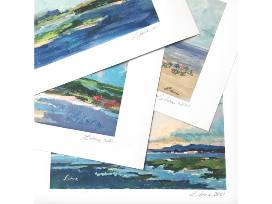 HEIDI'S PAINTERLY PALETTE OF BLUES, GREENS AND PINKS IS ALWAYS A FAN FAVORITE. HEIDI IS WELL VERSED IN ACRYLIC AND WATERCOLOR AND IS AVAILABLE FOR CUSTOM WORK AS WELL.