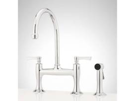 UPDATE YOUR KITCHEN WITH A STUNNING NEW FAUCET BY SIGNATURE HARDWARE. THE MARCEAU BRIDGE-STYLE FAUCET IN POLISHED CHROME WITH MATCHING SIDE SPRAY WILL ADD STYLE TO YOUR KITCHEN.