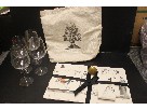 This package includes a canvas tote bag, paper placemats, four (4) wine glasses and a knobstopper.