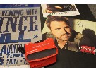 This includes a photo autographed by Brad Paisley, a collectible toy car, a CD autographed by Brad Paisley, a Hatch Print autographed by Vince Gill, a photo autographed by Vince Gill, a photo autographed by Randy Houser, a koozie autographed by Randy Houser and a mug autographed by Randy Houser
