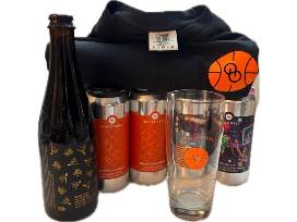 0Other Half Brewery "Hop Madness" Two 4-packs of Double IPA's, Pint of Snowbirds 9 Stout, logo t-shirt size large, and Hop Madness pint glass.