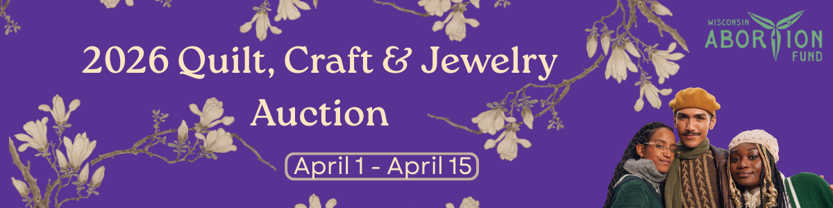 You can still participate in the auction!The Quilt, Craft and Jewelry Auction is the Wisconsin Abortion Fund's annual Spring fundraiser, but this year---it's more than that. It's a collective declaration that we can meet this moment with generosity and shared purpose. Every item was donated by a Wisconsinite who understands that offering what you can is part of how we keep one another safe. Each and every bid is a gesture of solidarity, a way of sustaining the work that keeps abortion access alive in Wisconsin. We hope you find something here that you love!