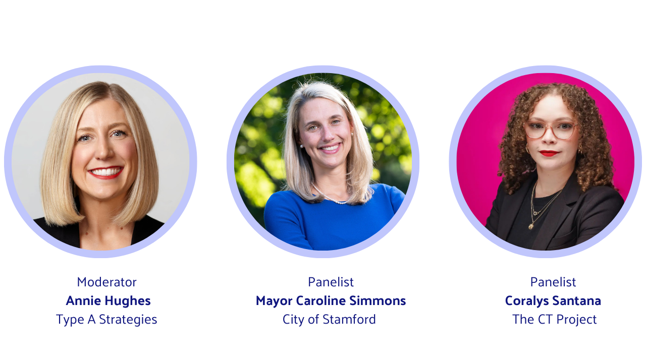 This dynamic panel discussion moderated by Annie Hughes brings together Caroline Simmons, Mayor of Stamford, and Coralys Santana of CT Project to examine civic leadership through a woman's lens.