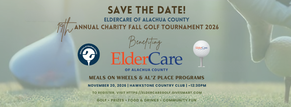 Donate an Item NowElderCare of Alachua County would like to personally invite you to participate in our 19th Annual ElderCare of Alachua County Golf Tournament benefiting Meals on Wheels and Al'z Place programs. This year's tournament will again take place at Hawkstone Country Club and will be held on November 20, 2026.