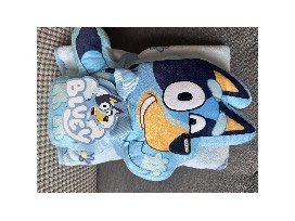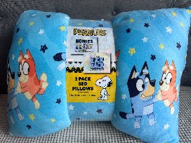 Bluey comfort sleep! Set includes two bed pillows, one small Bluey shaped pillow with throw blanket, and one large Bluey shaped pillow.