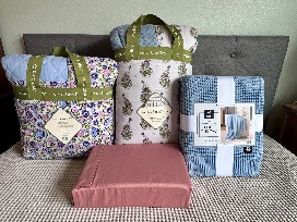 Gift yourself a brand new bedroom with this Vera Wang comforter set, Vera Wang quilt set, 700 thread count Member's Mark sheets, and Member's Mark knit throw blanket.