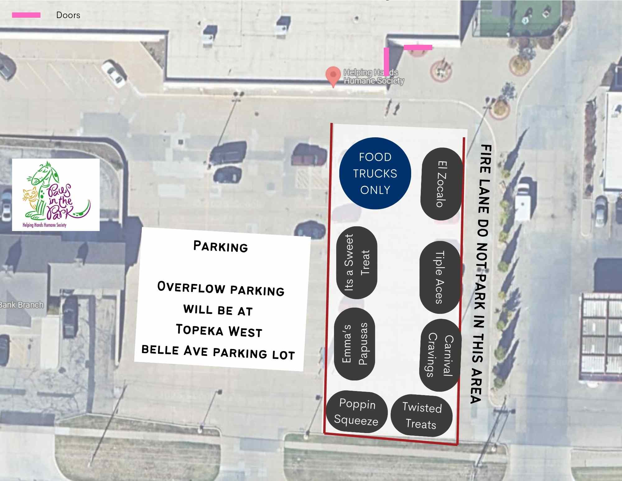 This event requires NON-RETRACTABLE LEASHES. Handler/attendee can bring no more than 2 dogs per adult. Please be courteous of other dogs who may not want to do greets, as well as picking up after your poochy's poops so we can leave the shelter as nice as we found it for all. Since there will be a lot of other dogs, any attending pet will need to up to date on vaccines. Pets behaving in any fashion that HHHS deems disruptive will be asked to leave the event. OVERFLOW PARKING at Topeka West 2001 SW Fairlawn Rd, Topeka, KS 66604 the parking lot entrance on SW Belle Ave next to the soccer field.