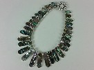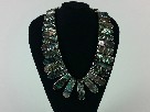 1A necklace of thirty-one dazzling, oblong abalone stones culminates in a pearl flower at the nape of the neck. Length: 18 in.