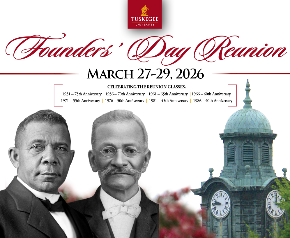 It's time to celebrate! As we approach Tuskegee University's Founders' Day weekend, March 27-29, we are thrilled to welcome you back home. This is a special time to reconnect, celebrate, and honor the legacy we have built together.