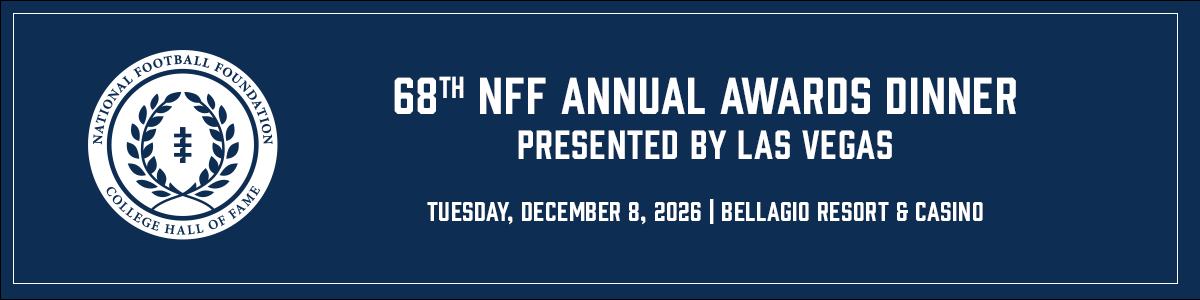 Be a part of history as we celebrate all that is good in college football at one of the sport's grandest traditions -- the 68th NFF Annual Awards Dinner Presented by Las Vegas -- Tuesday, Dec. 8, 2026, at the iconic Bellagio Resort & Casino.