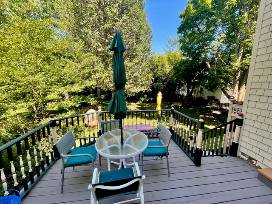 The eat-in kitchen leads to a deck, patio, and large yard perfect for outdoor meals, grilling, and lawn games. Convenient first-floor laundry room. The second floor has three bedrooms and three full bathrooms. One queen bedroom with en suite full bath, spacious master bedroom with large master bathroom across the hall with new claw foot tub, and a bedroom with two twins and hall bathroom with stall shower. The third floor has a unique set up with a private bedroom with a queen bed, a full bath across the hall with shower/tub combo, and a family room and full kitchen with all amenities.