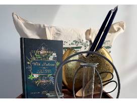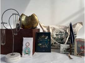 A gorgeous tote filled with assorted home and gardening goods from Rosehip, Williamsburg's favorite florist.