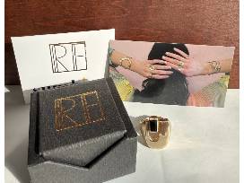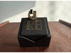 A beautifully crafted art deco inspired ring in high polished brass with an onyx stone by Brooklyn jewelry artist Renee Frances. The ring may be adjusted for size following the event. Renee Frances Jewelry is designed in Greenpoint, Brooklyn. This is a PS 132 Family Business!