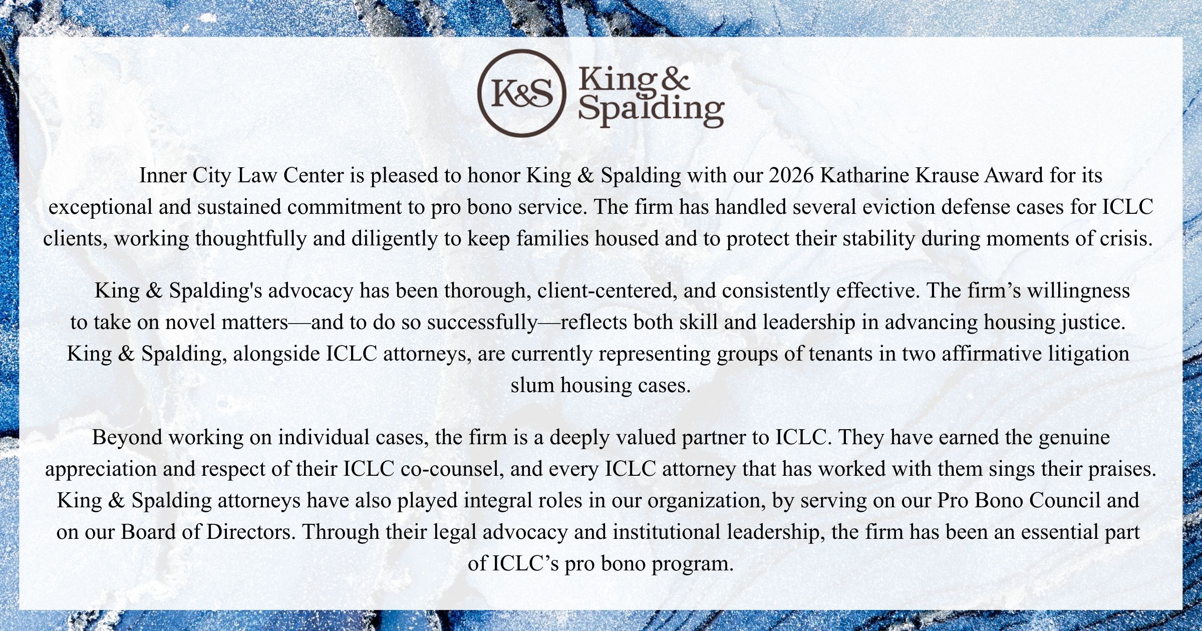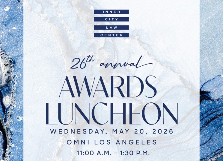 Join us for our Annual Awards Luncheon, an amazing afternoon of celebrating case victories, client perseverance, honoring advocates, and thanking our dedicated donors! Each year, Inner City Law Center presents two prestigious awards-the Humanitarian Award and the Katharine Krause Award-to champions who have worked to bring justice to people experiencing homelessness. Our Annual Awards Luncheon is our single biggest fundraiser of the year; the sponsorships pledged and funds raised make our vital year-round work possible.