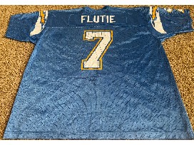 This is a signed Doug Flutie jersey #7 from the San Diego Chargers size XXL.