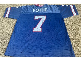 This is a signed Doug Flutie jersey #7 from the Buffalo Bills size XL.