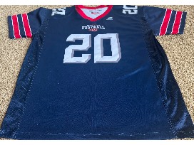 This is a signed Doug Flutie promotional jersey #20 from Doug's video game size XXL.