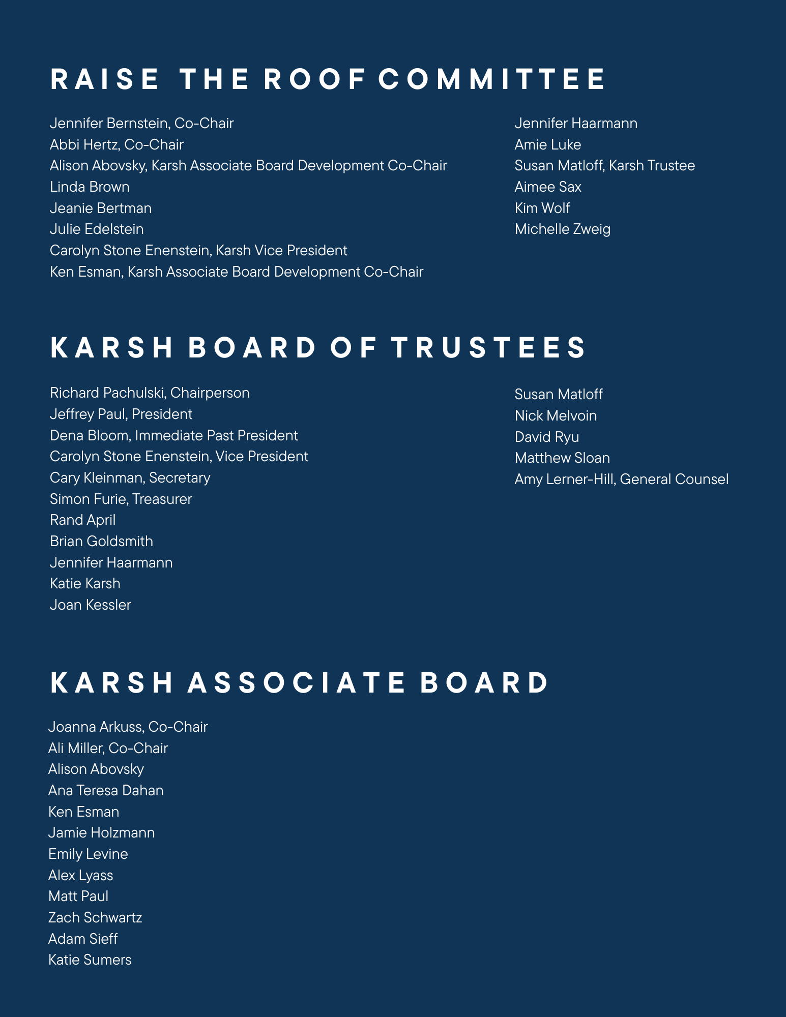 We Appreciate the Support of Our Raise the Roof & Karsh Leadership