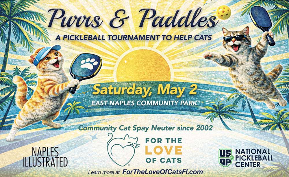 Stay and Play in May! Join us for a fun, high-energy day of pickleball, community, and compassion at our 2nd annual Purrs & Paddles Pickleball Tournament at the National Pickleball Center located at East Naples Community Park in Naples on Saturday, May 2. This exciting event brings players, spectators, families, and animal lovers together for a memorable day on and off the court - all to support the lifesaving work of For the Love of Cats.