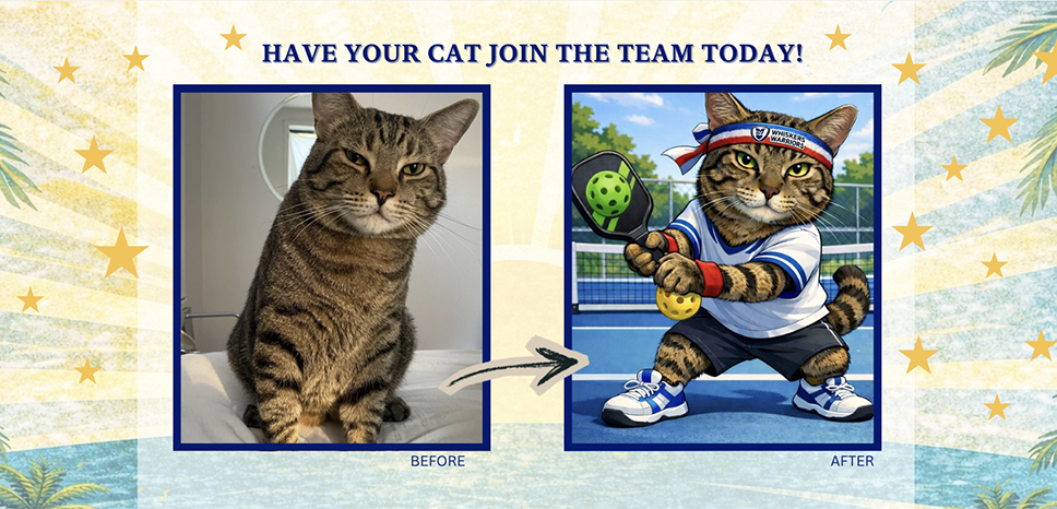 Turn your cat into a pickleball legend and support lifesaving programs for cats in our community!