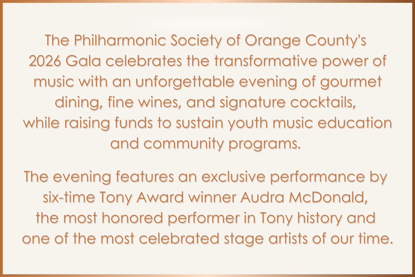 I have read and agree to the Terms and Conditions and Privacy Policy and give my consent to Philharmonic Society of Orange County to process my personal data. I understand I can revoke this consent at any time.
