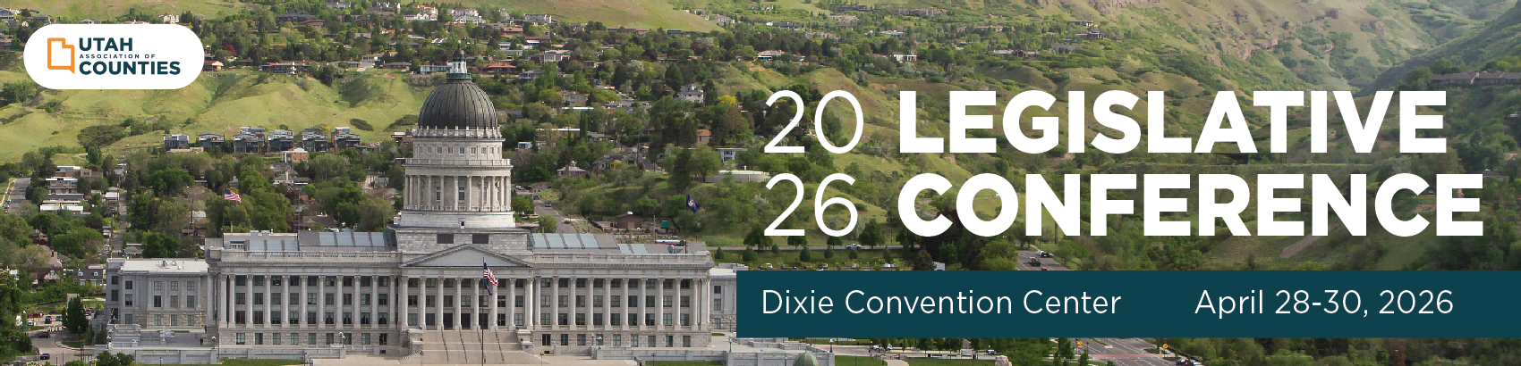 Utah Association of Counties presents the 2026 Legislative Management Conference, April 28-30 (UAC Board Meeting and other ancillary meetings will occur on April 28th). These meetings are an opportunity to gather our affiliate groups and discuss updates from the 2026 legislative session.