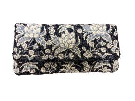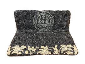 This one-of-a-kind navy floral beaded clutch is the perfect way to celebrate your lion pride! The Marymount seal is hand-sewn on the inside flap, making it a discreet and celebratory way to show off your school spirit.