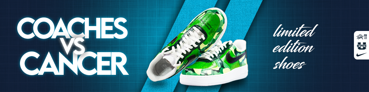 During our Coaches vs Cancer game, sponsored by Intermountain Health and Intermountain Children's Health, on Wednesday, January 28, 2026, Xander Gunnell served as the honorary starter and left a lasting impact on everyone involved. Xander is a 12-year old cancer survivor with a big heart, a bright smile, and an incredible love for life. He designed special camo shoes, which were hand painted by students from the USU Caine School of the Arts and gifted to our coaches and support staff.
