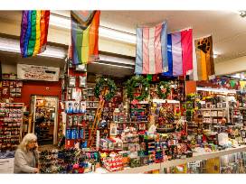 Partial list of things you can purchase at Cliff's Variety: Soda Stream, light switch, velcro by the inch, fuzzy coasters, Harry Styles magnet, tarot deck, baby teether, tub stopper, glitter, pool float, Hot Wheels, hammer, Drano, wig, dog bowl, glow stick, muffin pan, fanny pack, rug, coloring book, copied key.