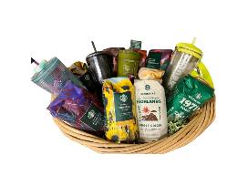 Who loves coffee? This gift basket includes ten (10)-1 lb. bags of various coffee flavors, a cold cup and carry case, a vacuum insulated cold cup, and two silicon cups with lids. Keep it for yourself and treat your friends and family!