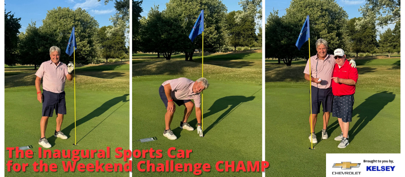 And the star of the day - the Sports Car For the Weekend - Closest to the Pin Challenge by Kelsey Chevrolet was won with a HOLE IN ONE by Mark Folzenlogen! We wouldn't have believed it if there wasn't photo proof - so here it is. Special thanks to Uncle Bob Luchsinger for a great day.
