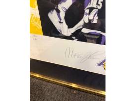 Description: This is a signed framed lithograph of Magic Johnson, measuring 40 x 56 inches. A bold display piece for any basketball fan or collector, featuring the signature of the legendary player and ready to hang.