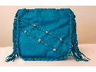 Owl Woman original purse with hand-tanned teal dye and sterling silver medallions. Retail Price $200