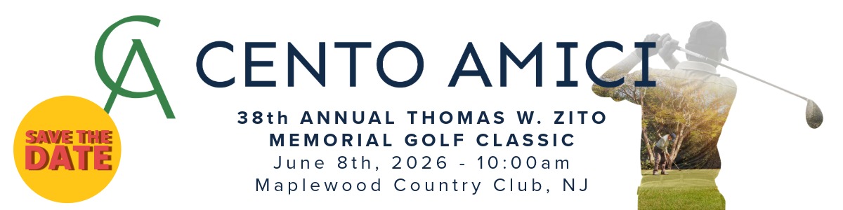 Cento Amici is a community-based, member organization dedicated to providing need-based scholarship assistance to qualified students in New Jersey. Our mission is to enhance the educational opportunities for those who need it most and who are most under-served by existing need-based programs. Cento Amici has contributed over $3,000,000 directly to New Jersey scholarships, and an endowed fund for future scholarships. On June 8th, 2026, Cento Amici will host its 38th Annual Thomas W. Zito Memorial Golf Classic at Maplewood Country Club.